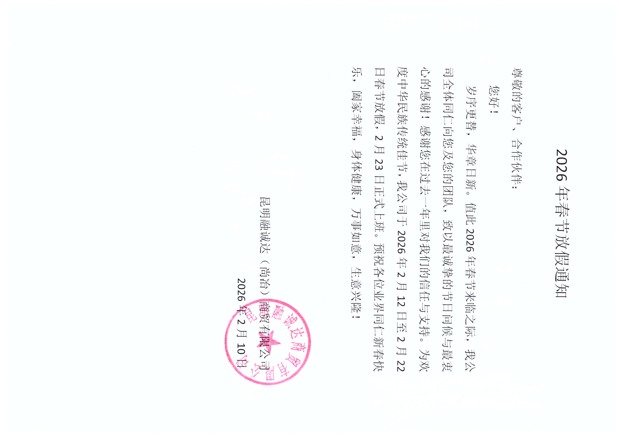 2026年春节放假通知